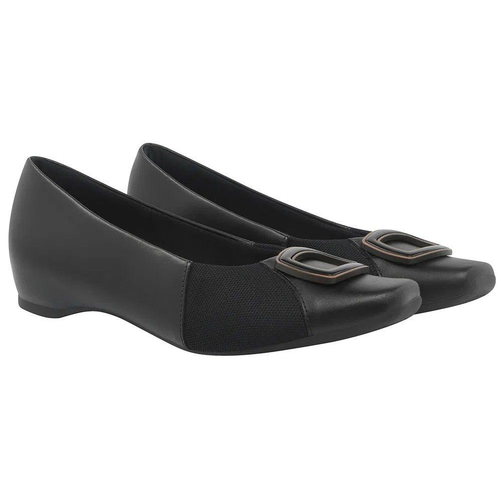 Sapato Usaflex Sapatilha Preto Com Tecido Elastico, sapatilha couro, fivela moderna e elastico para proteção da lateral do dedão, salto interno trazendo conforto aos seus pés. Confira tecnologias: