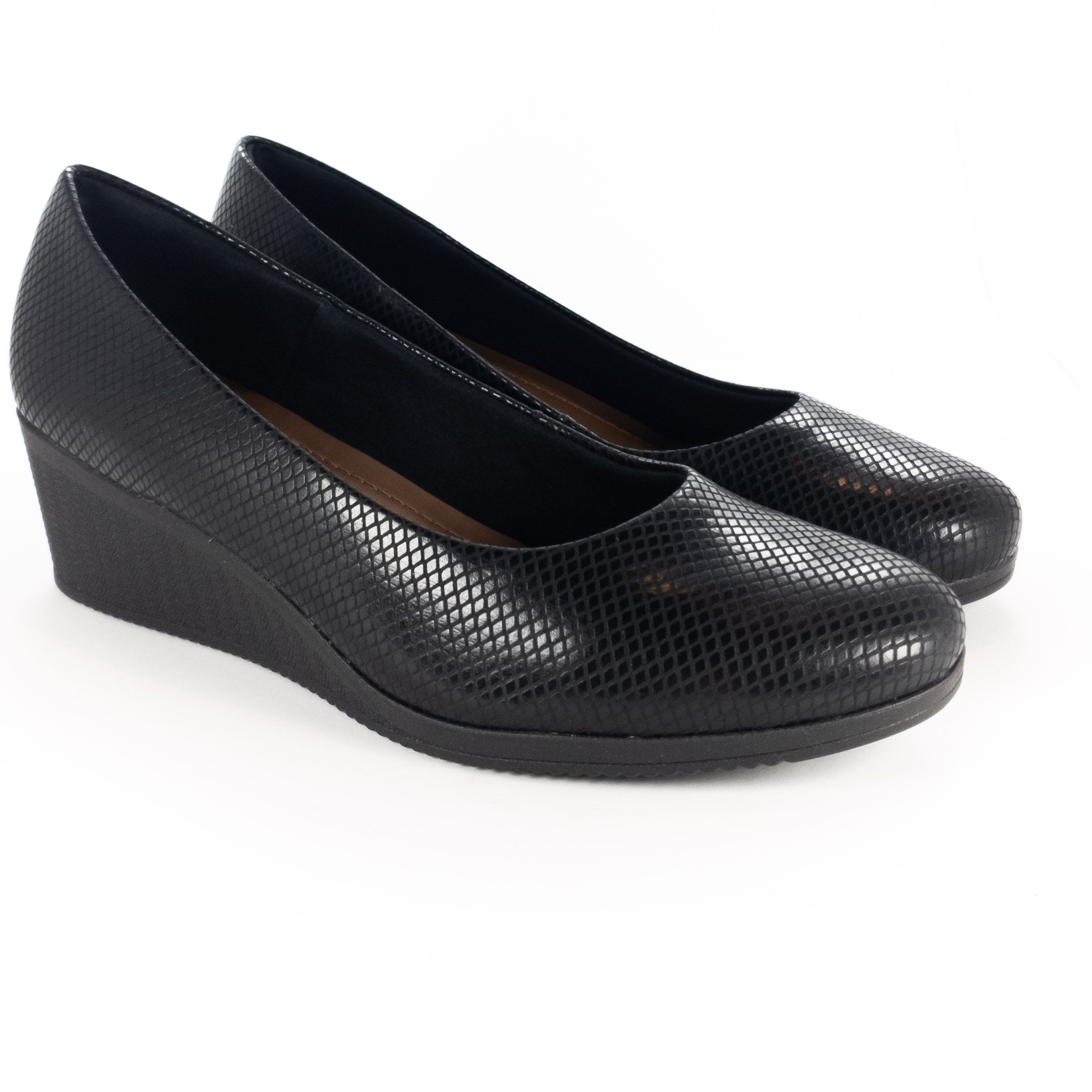 Sapato Usaflex Scarpin Preto Anabela em couro preto com textura serpente, é a aposta ideal para quem busca um item que combine elegância, versatilidade e conforto para enfrentar a correria do dia a dia. Possui a tecnologia Antibactéria Usa Care que é um forro em tecido ressistente, macio e sedoso, que impede a propagação de bactérias e fungos, evitando alergais e odores. Possui Palmilha Everflex superior à palmilha de espuma, o látex é um material natural, biodegradável e com memória permanente, ou seja, como a sua espessura original não é alterada, a palmilha pode ser usada o dia todo sem perder o conforto. E também tem a Sola Comfy que ameniza o impacto gerado pelas irregularidades do solo e tem um solado com espessura extra que mantêm os pés confortáveis durante todo o uso do sapato.